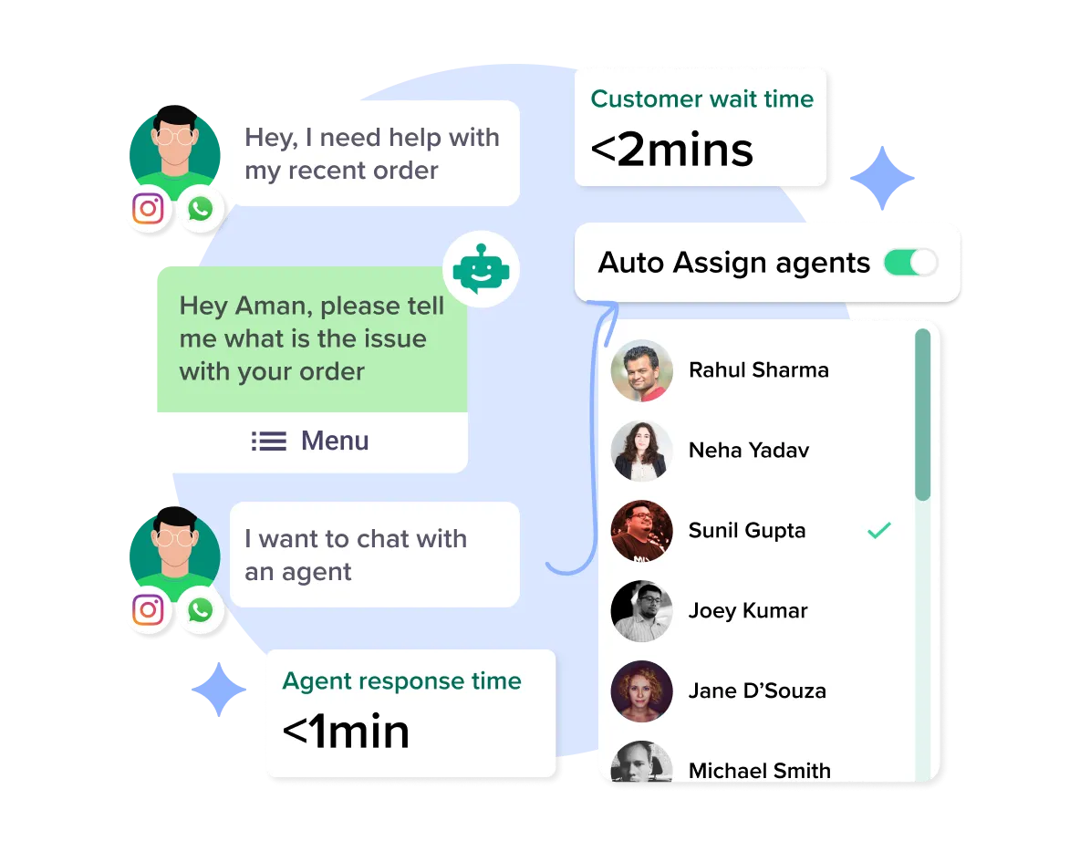 Auto chat routing to multiple agents on WhatsApp for unanswered queries